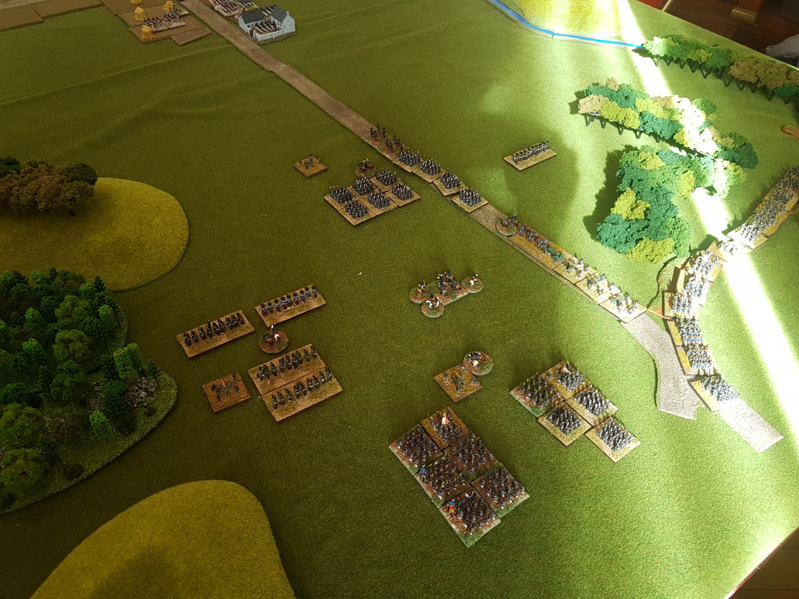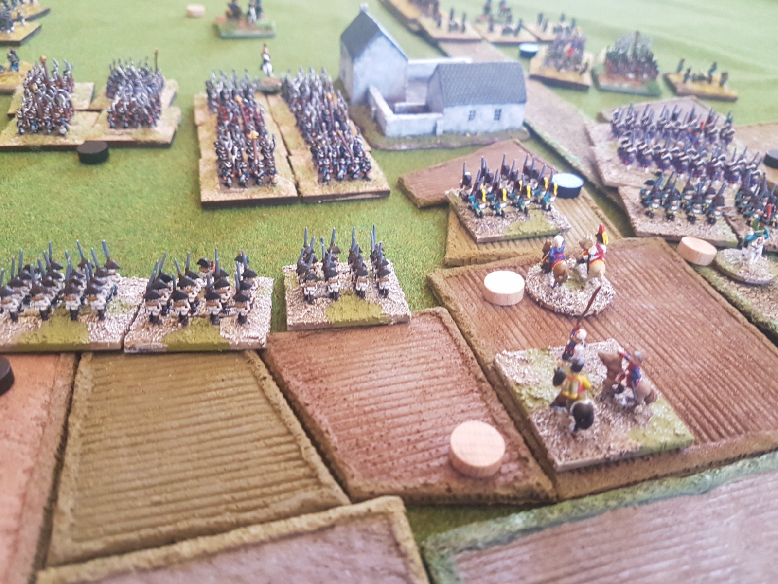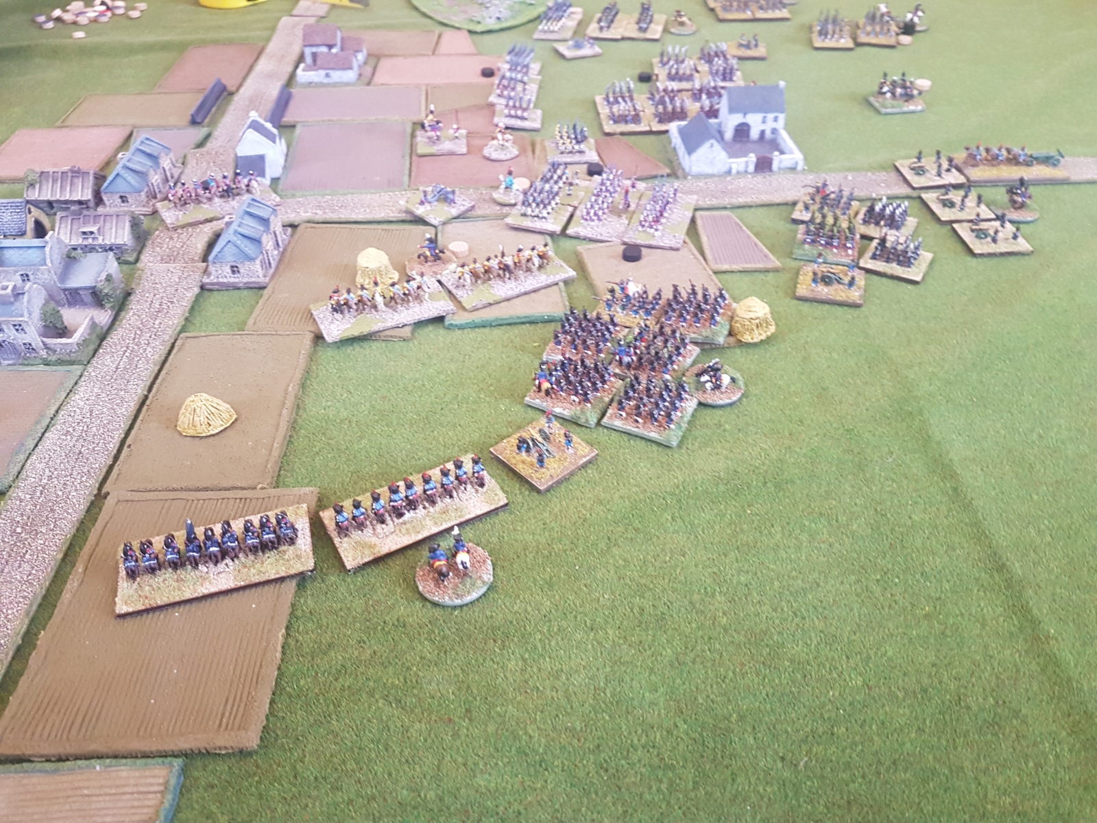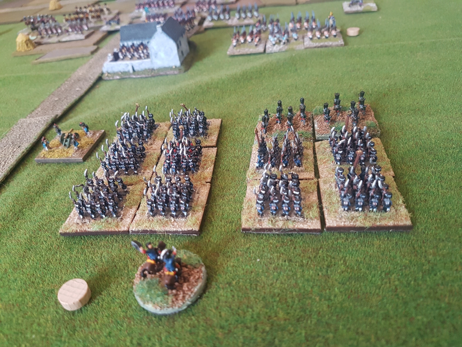 Oui il en reste un dixième qui n’est pas peint… Il est en manteau, tout comme l’un de ceux juchés sur un cheval gris, mais avant de le peindre, je voulais vérifier si je n’avais pas d’image de généraux avec un manteau autre que bleu dans ma documentation. Si je trouve (à part le Maréchal Ney), je le peindrai différemment, sinon il sera bleu aussi.