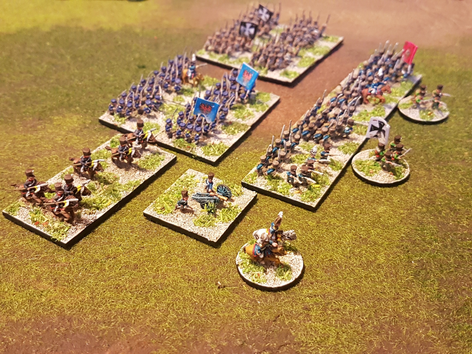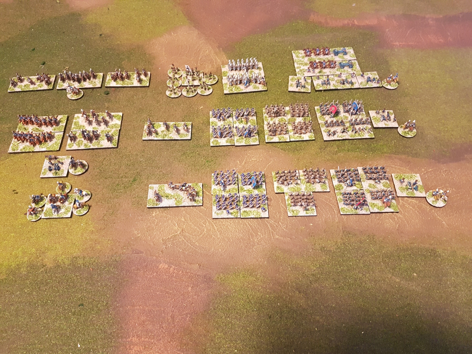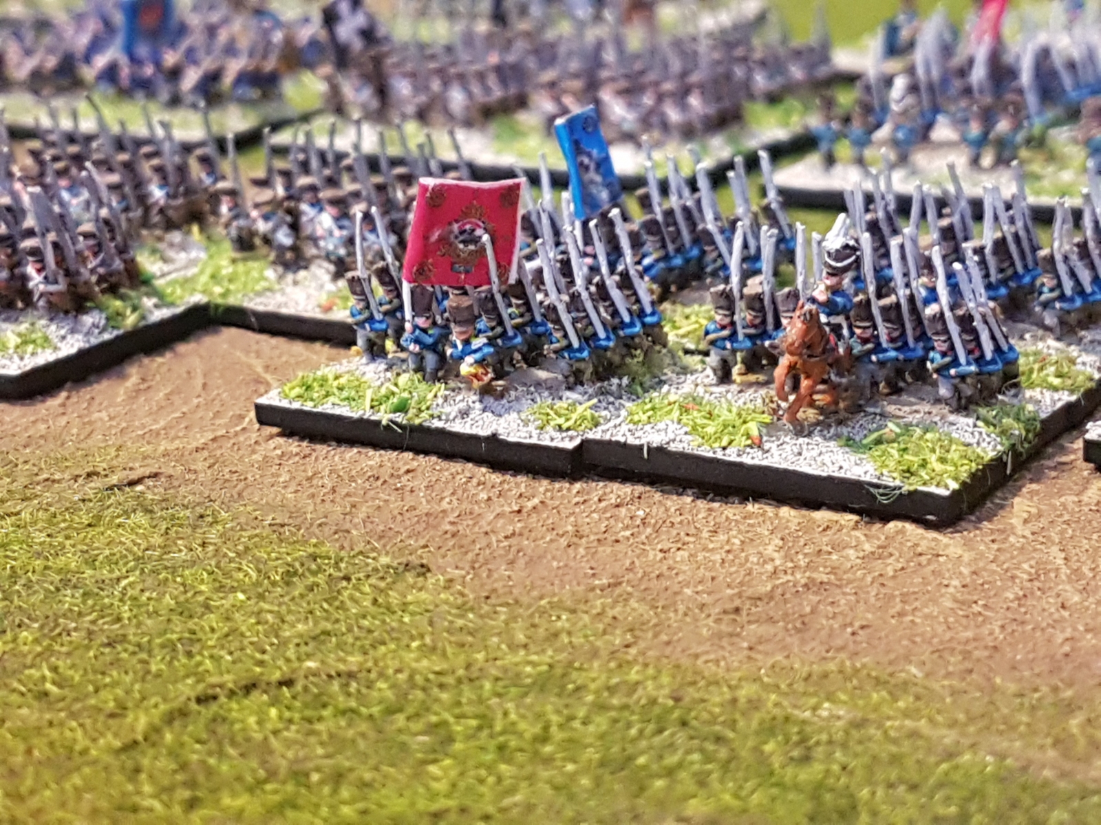Selon les socles, les armées, les figurines, les uniformes, je varie parfois les couleurs de socles. Ça peut paraître étrange, mais ça passe car la technique reste la même, et ça aide aussi à distinguer parfois entre deux corps d’armée ou divisions.