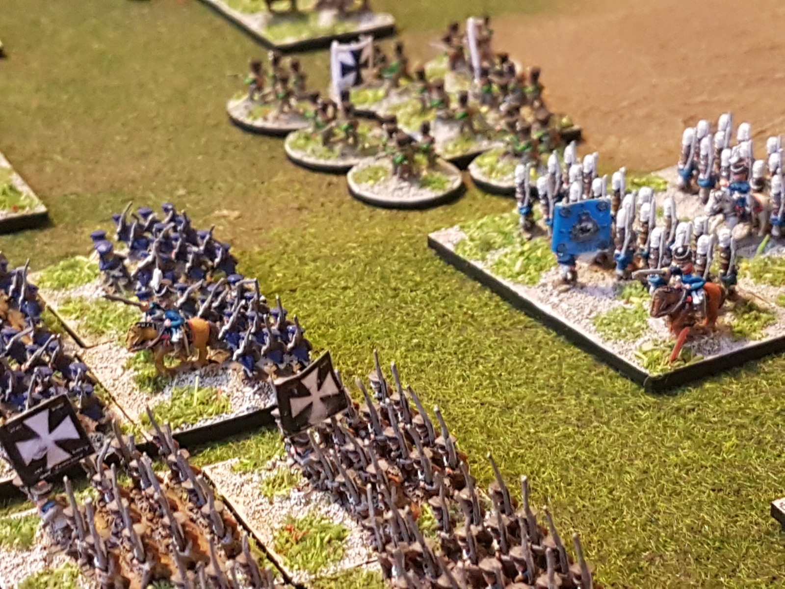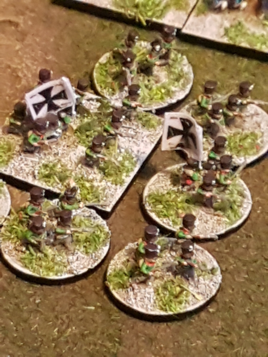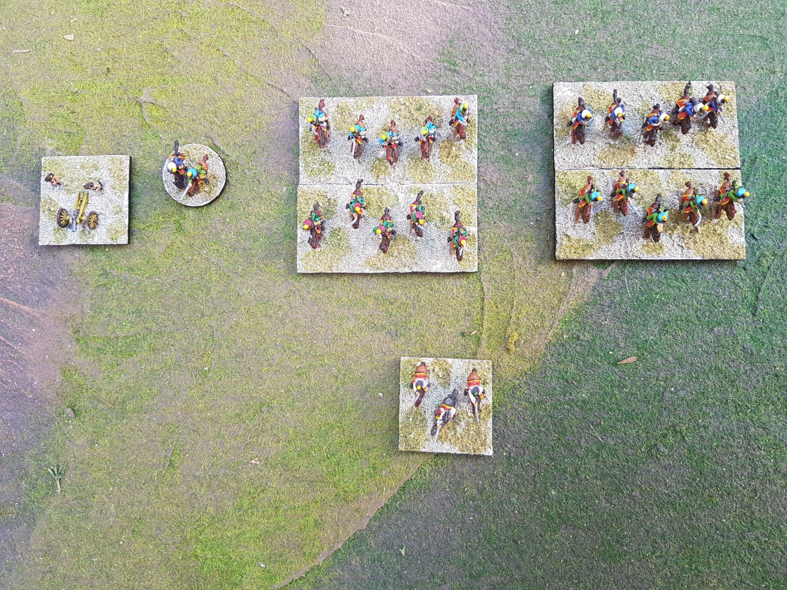 Selon les socles, les armées, les figurines, les uniformes, je varie parfois les couleurs de socles. Ça peut paraître étrange, mais ça passe car la technique reste la même, et ça aide aussi à distinguer parfois entre deux corps d’armée ou divisions.